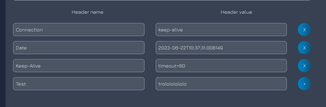 It's not send in response until I add second header using plus button. I suggest one of two solutions: